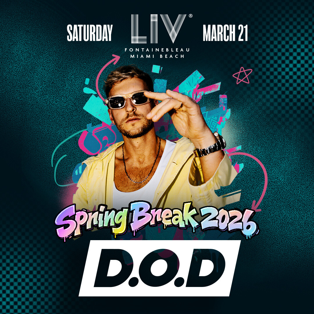 British house music sensation D.O.D brings his feel-good, piano-driven sound to LIV Nightclub on Saturday, March 21, 2026. Known for his vibrant UK house style and hands-in-the-air anthems, Dan O'Donnell has spent over a decade carving out a space in dance music's elite. Get ready for an unforgettable night inside the legendary Fontainebleau Miami Beach.